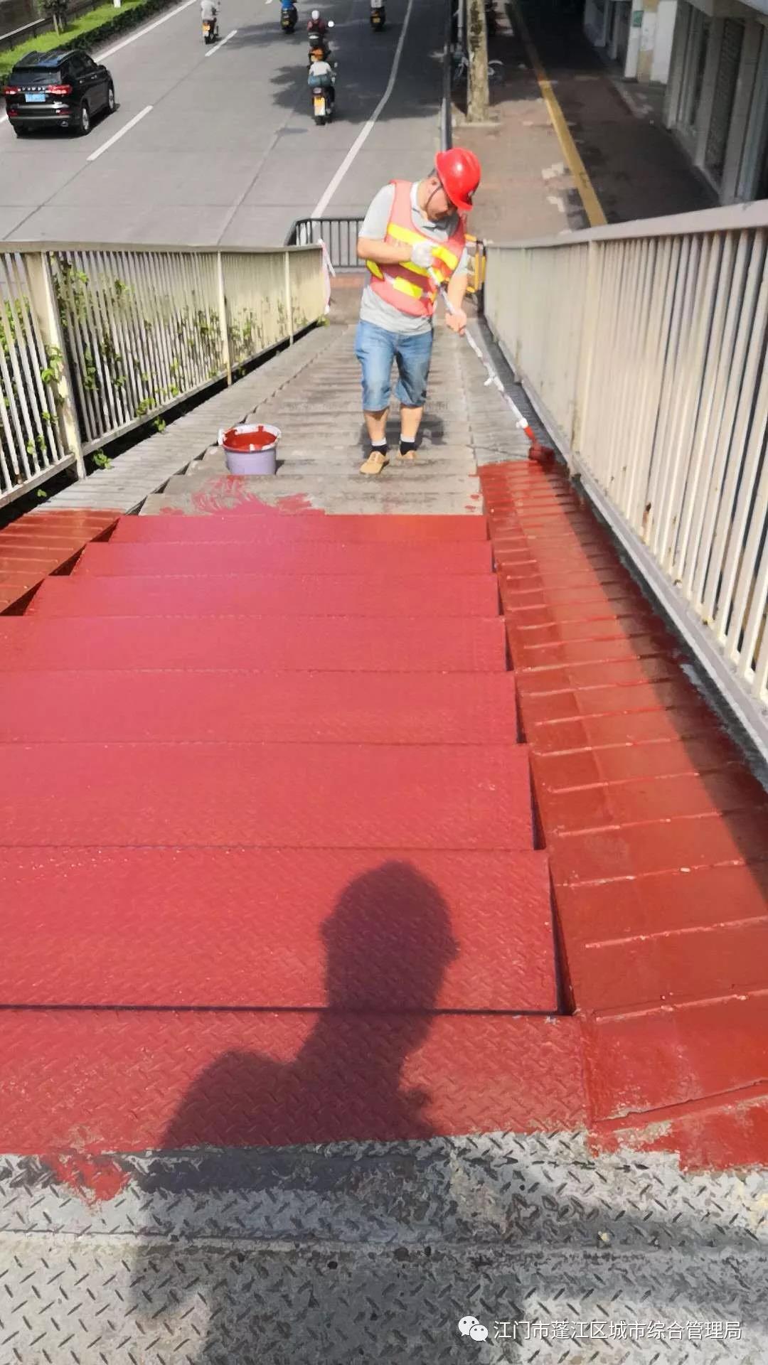 區(qū)市政設施管理監(jiān)督站通過更換花紋防滑鋼板,在橋梁鋼板上涂灰色自流平環(huán)氧地坪漆,從而消除橋梁安全隱患。經過連續(xù)8天的精心維修和養(yǎng)護,目前已順利完成體育場天橋防腐防滑工程,并一次性通過驗收合格,給市民營造一個安全、舒適的出行環(huán)境。