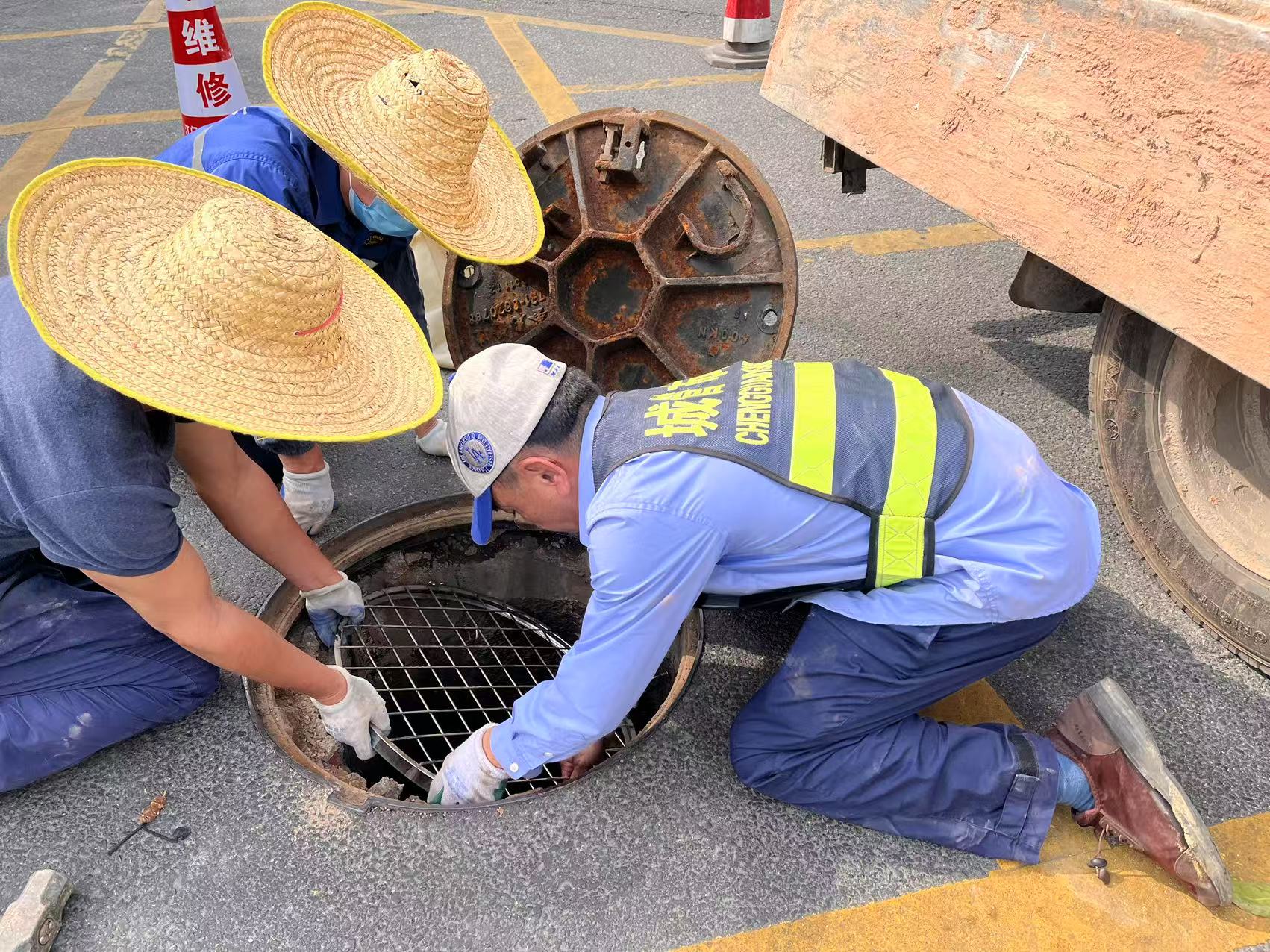 對易積水區(qū)域進行清疏和安裝、更換窨井防墜網(wǎng)