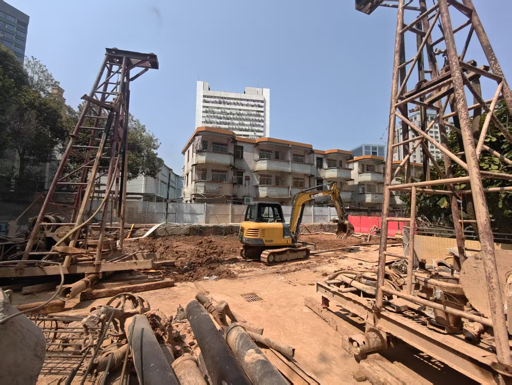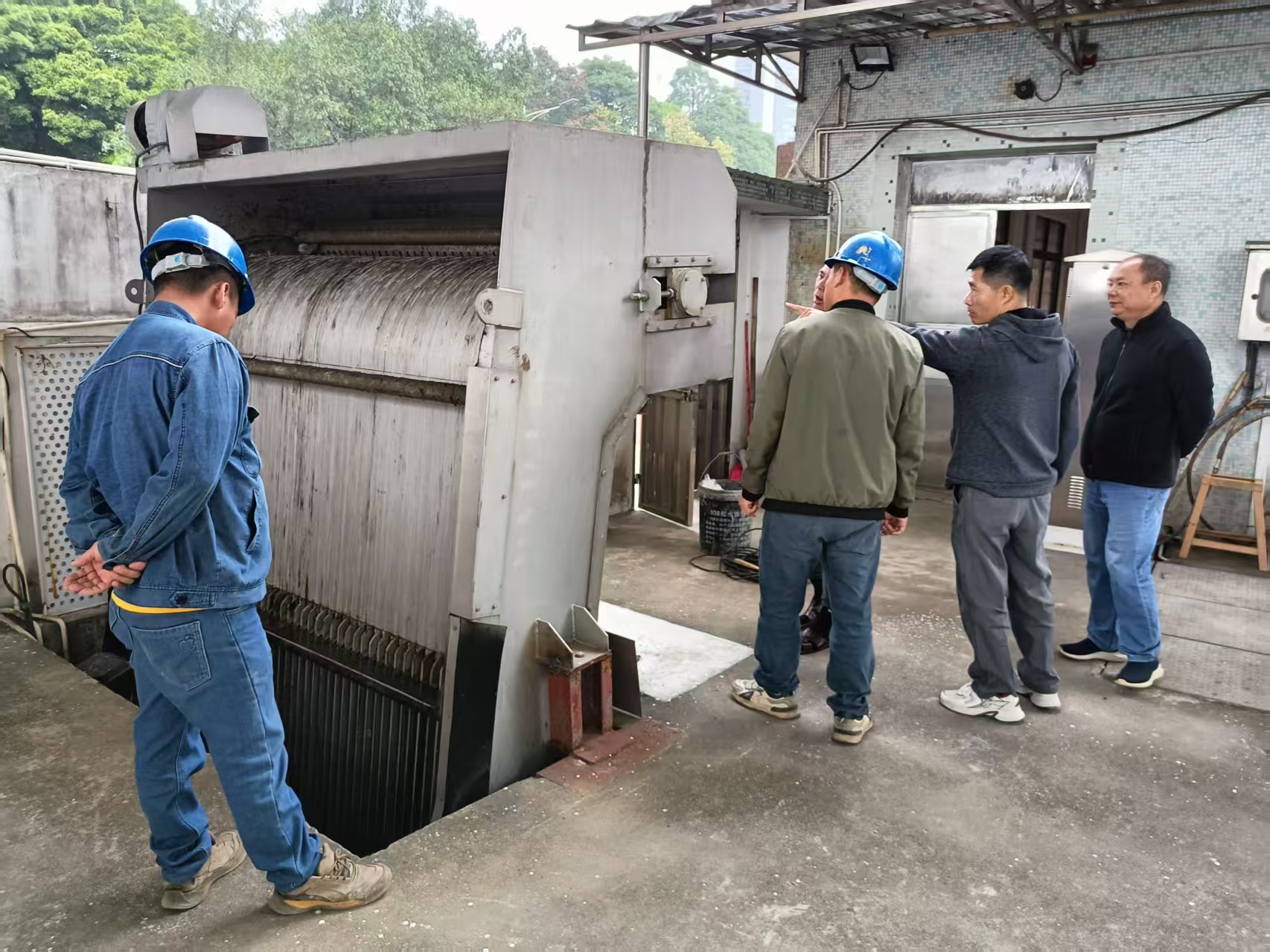 拆除前的龍崗泵房 在龍崗泵房改造現(xiàn)場,機械轟鳴,工人正緊張施工中