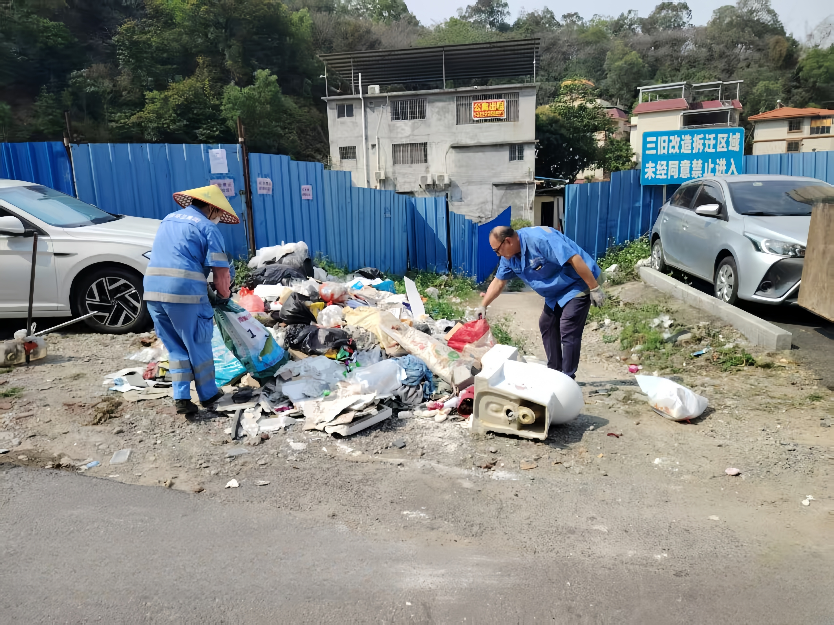 聯(lián)合屬地鎮(zhèn)政府、結(jié)對(duì)社區(qū)、服務(wù)公司對(duì)衛(wèi)生“黑點(diǎn)”進(jìn)行清理