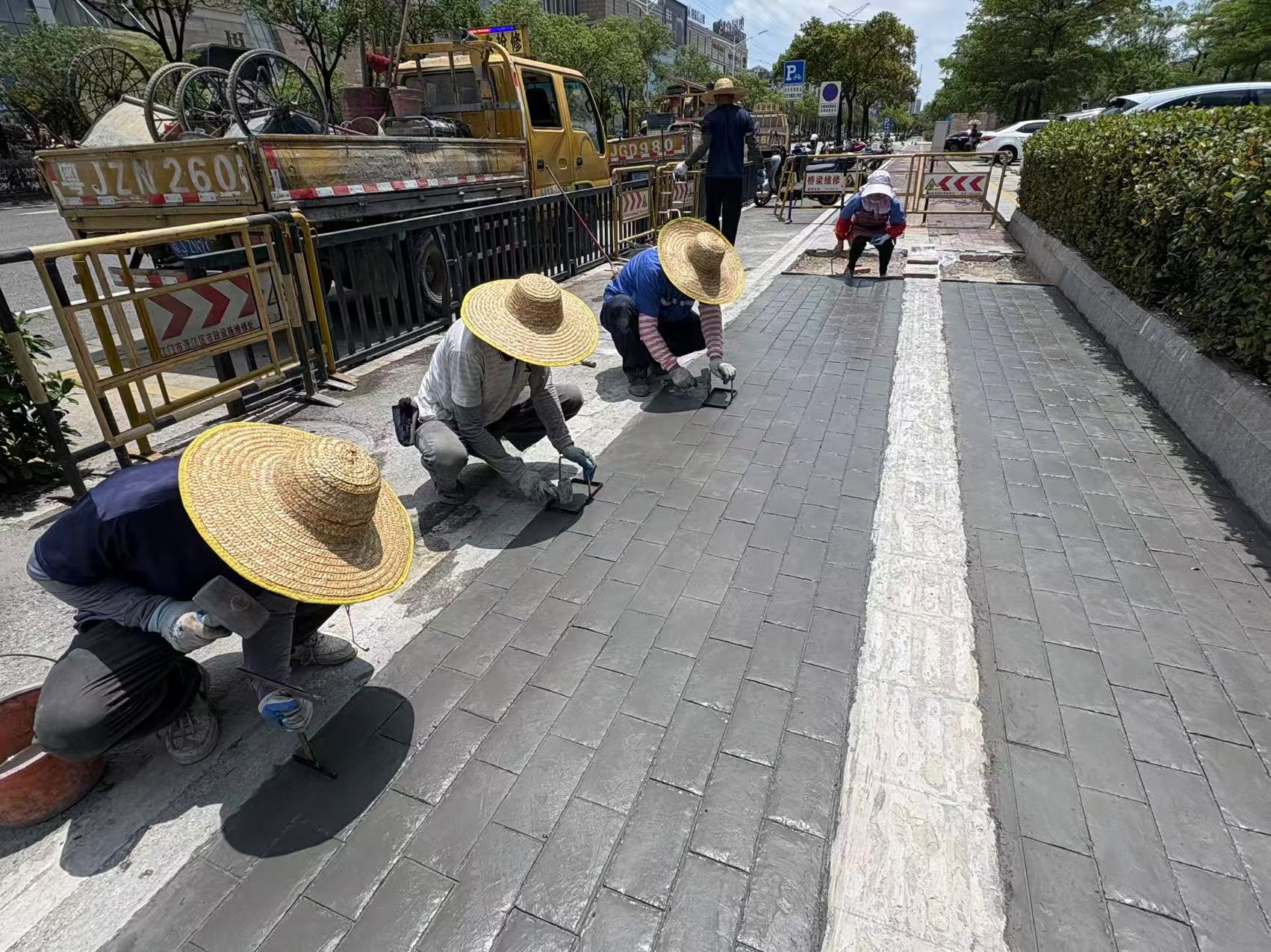 如何降低成本,探索出既耐用又能縮短工期的人行道修復(fù)?我局將此問題作為重點攻堅方向,始終秉持“以人為本”原則,結(jié)合城市管理“八大行動”,因路施策,優(yōu)化方案“對癥下藥”。在探索過程中,該局發(fā)現(xiàn)傳統(tǒng)人行道存在諸多弊端。由于其抗壓性能欠佳、孔隙多且強度不足,在實際使用中極易損壞。尤其是在人流量密集,摩托車頻繁碾壓、停放的區(qū)域,傳統(tǒng)透水磚更是難以滿足使用需求。