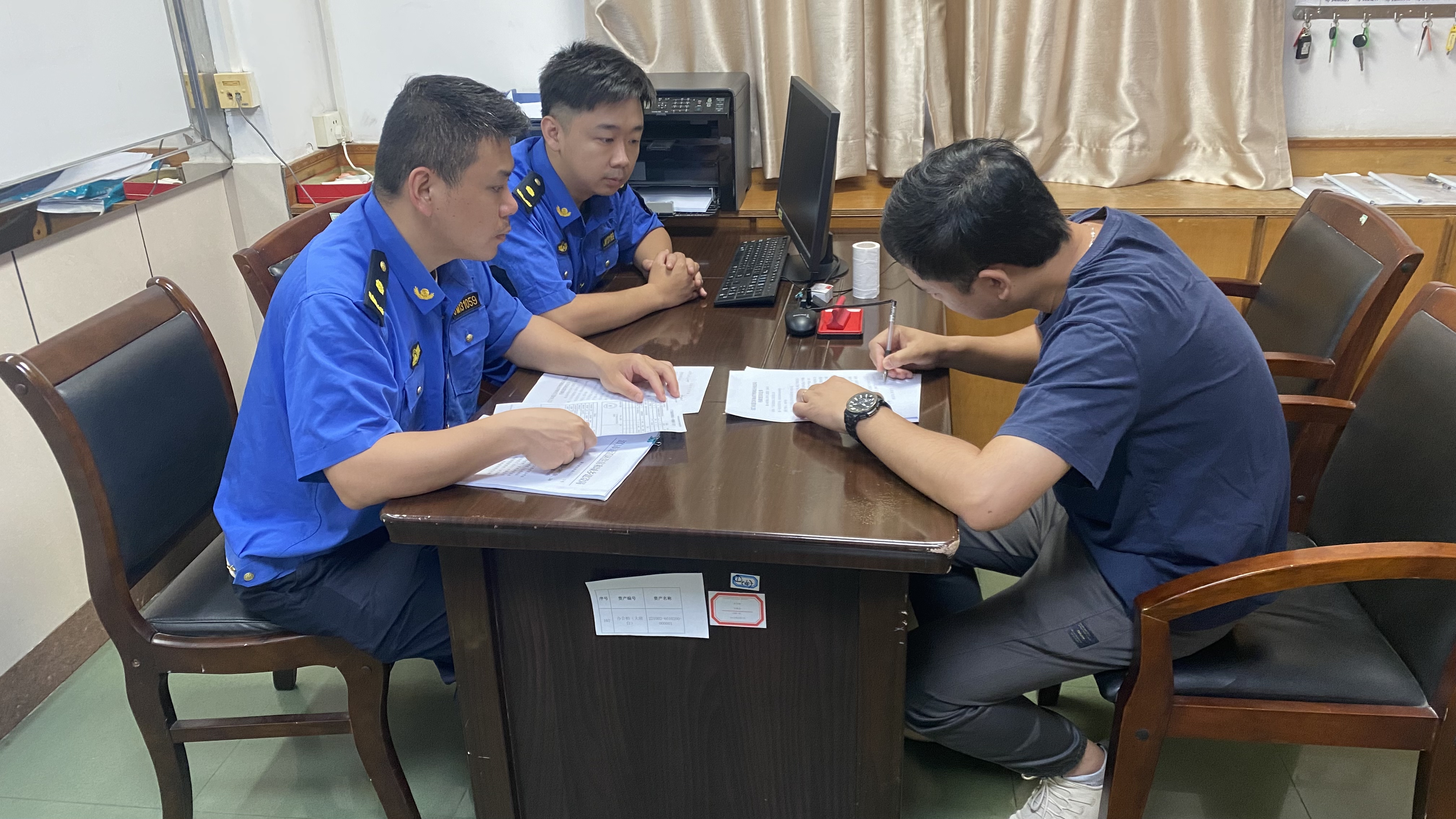 “您好!我們是蓬江區(qū)城市管理和綜合執(zhí)法局的執(zhí)法人員,現(xiàn)依法對(duì)您工地的建筑垃圾處置情況開展檢查,這是我們的證件。根據(jù)《江門市建筑垃圾管理辦法》相關(guān)規(guī)定,施工單位有責(zé)任建立完善的建筑垃圾管理臺(tái)賬,并且嚴(yán)禁擅自傾倒、拋灑或者堆放建筑垃圾的行為。如果違反相關(guān)規(guī)定,將依法承擔(dān)相應(yīng)的法律責(zé)任,請(qǐng)您務(wù)必配合并嚴(yán)格遵守。”在開展建筑垃圾處置專項(xiàng)檢查的過程中,執(zhí)法人員一邊亮明身份,一邊向施工單位負(fù)責(zé)人進(jìn)行詳細(xì)的普法宣傳。