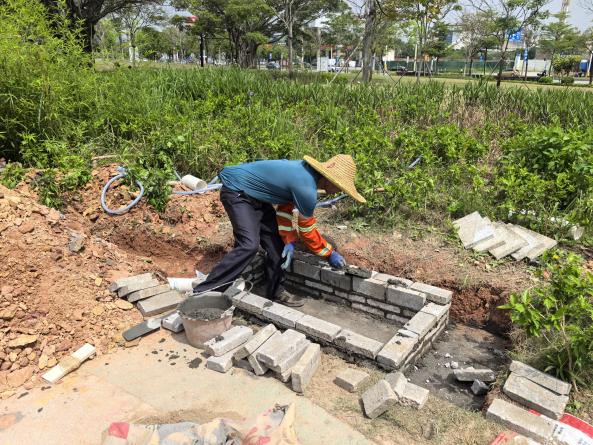 選址確定后,綠化中心工作人員迅速行動,憑借專業(yè)技術,利用公園改造剩余與常見建材,在保證質(zhì)量的同時最大限度降低成本。選材時嚴格遵循實用安全與經(jīng)濟并重的原則,選用易清潔、安全性高且性價比優(yōu)的材料。施工全程嚴守規(guī)范標準,精準把控每一道工藝細節(jié),確保洗腳池結構穩(wěn)固,為孩子筑牢安全防線。