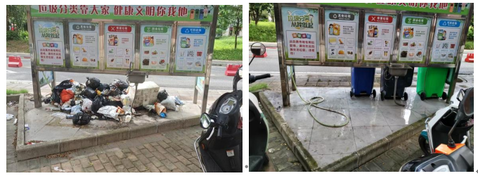 ▲西江御府路邊垃圾分類亭垃圾堆積整改前后