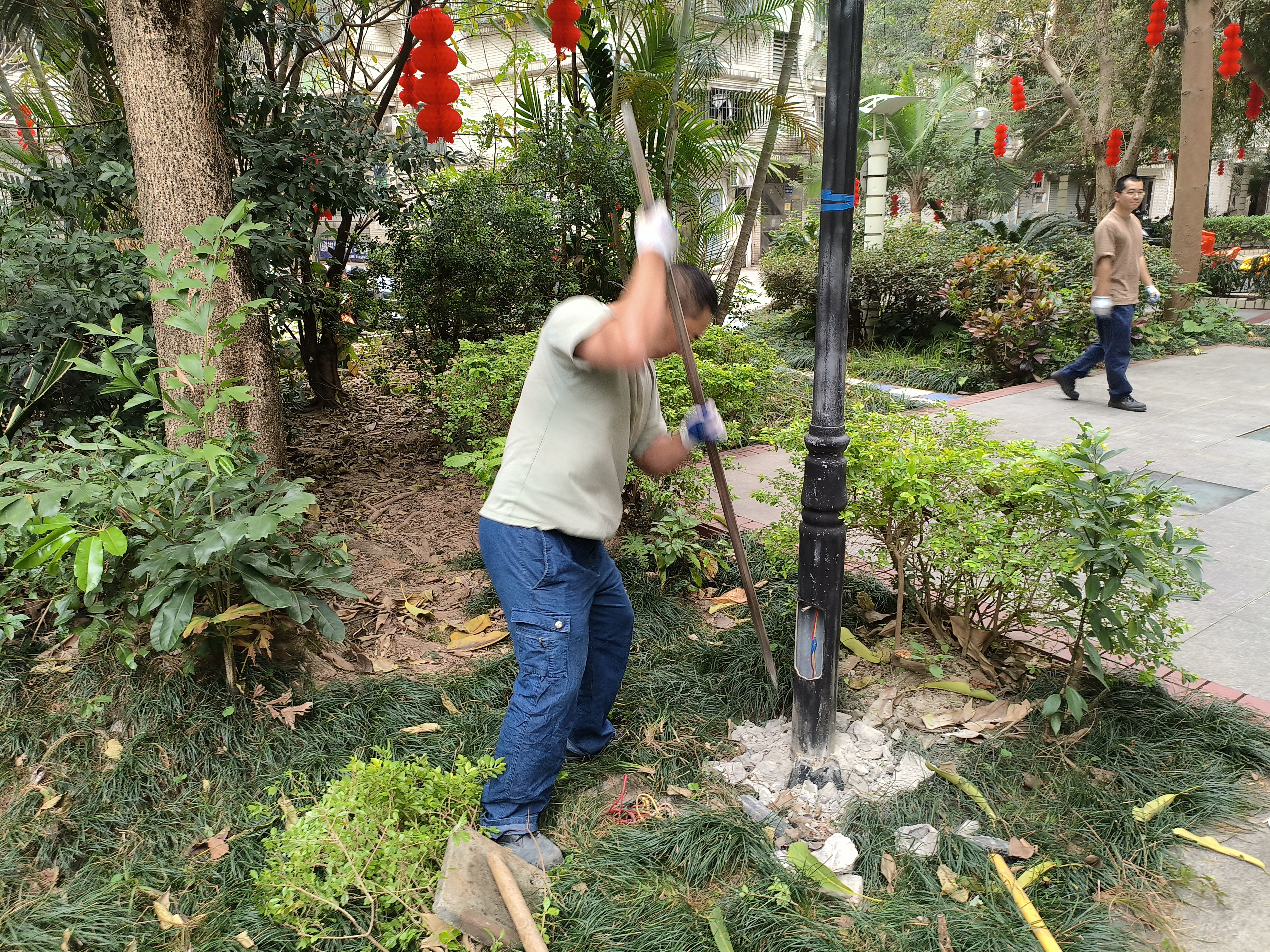 “路燈該如何維修?具體故障情況怎樣?” 帶著這些關(guān)鍵問(wèn)題,作為黨員的徐曉達(dá)、梁耀庭等人主動(dòng)深入盈翠苑小區(qū)開(kāi)展實(shí)地考察。在排查過(guò)程中,他們首先核實(shí)了18-19幢路燈因電線損壞無(wú)法點(diǎn)亮的問(wèn)題。在此基礎(chǔ)上,并未止步于既定排查范圍,而是主動(dòng)延伸檢查觸角,進(jìn)一步發(fā)現(xiàn)15-17幢區(qū)域部分位于花圃內(nèi)的路燈,因多年來(lái)周邊樹(shù)木生長(zhǎng)旺盛,枝葉層層疊疊遮擋光線,導(dǎo)致夜間照明效果大打折扣。為切實(shí)保障群眾出行安全,我局決定將這兩類問(wèn)題路燈一并納入整改范疇。