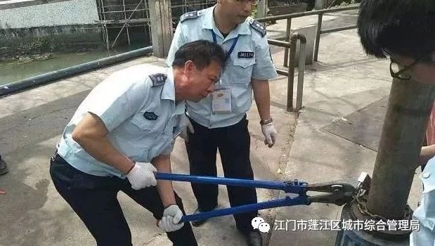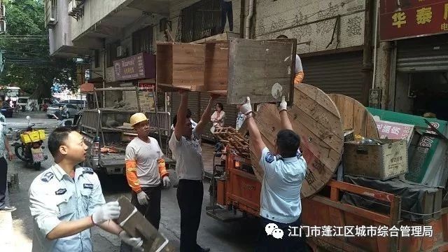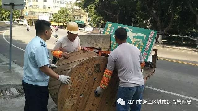二、在鎮(zhèn)上的大街小巷內(nèi),有不少堆放已久的雜物,例如廢棄的鐵架,電線電纜的木盤,木架等,不但影響市容市貌還占著公共空間。執(zhí)法人員對(duì)此進(jìn)行清理。另外,還存在私自設(shè)置的廣告牌、搭建雨篷和在燈柱上設(shè)置鐵鏈的現(xiàn)象,執(zhí)法人員統(tǒng)一使用工具將其拆除。