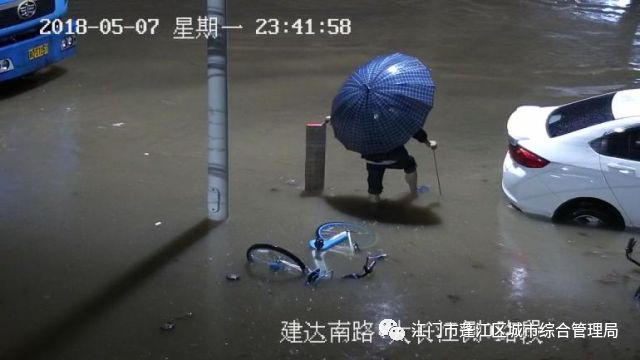 但是,搶險(xiǎn)隊(duì)員們并沒有掉以輕心,雨還在下,現(xiàn)在遠(yuǎn)沒到松懈的時(shí)候!果然,四十分鐘不到,23點(diǎn)16分建達(dá)南路的積水就達(dá)到了30毫米,而到了23點(diǎn)48分,積水已經(jīng)達(dá)到了35毫米,這樣的深度已經(jīng)足以淹沒小腿!
