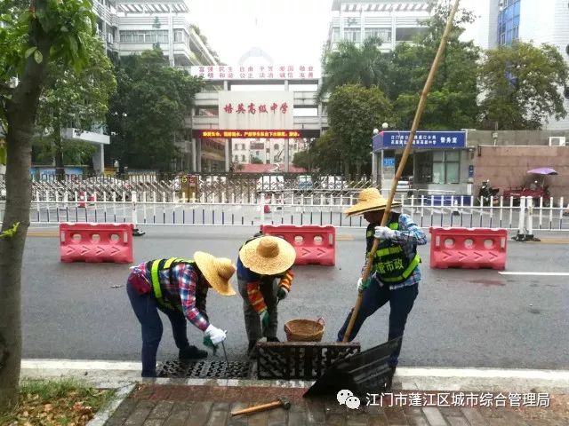 加強考點學校周邊排水管道的檢修和維護。逐一檢查轄區(qū)九個水浸黑點的現(xiàn)狀,并對江門市培英高級中學、第一職業(yè)高級中學考點周邊下水道進行全面的清理疏通,確保排水通暢。