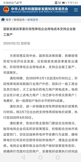 降低企業(yè)用電成本。加快落實(shí)國(guó)家發(fā)改委關(guān)于階段性降低企業(yè)用電成本優(yōu)惠政策,對(duì)接協(xié)調(diào)供電部門(mén),對(duì)高耗能行業(yè)以外的工商企業(yè)、個(gè)體電價(jià)用戶,統(tǒng)一按照原到戶電價(jià)水平的95%結(jié)算。此次降電價(jià)政策惠及我區(qū)約4.52萬(wàn)用戶,可降低企業(yè)用電成本約3700萬(wàn)元。實(shí)施“欠費(fèi)不停電”。協(xié)調(diào)供電部門(mén),對(duì)受疫情影響未能在1月及時(shí)繳納電費(fèi)的中小企業(yè)持續(xù)供電,且在疫情期間不計(jì)收違約金,盡量減輕疫情對(duì)企業(yè)的影響,幫助中小微企業(yè)渡過(guò)難關(guān)。加大財(cái)政金融支持力度。用好國(guó)家關(guān)于扶持經(jīng)濟(jì)發(fā)展的各項(xiàng)專項(xiàng)資金優(yōu)惠政策,著力緩解我區(qū)重點(diǎn)項(xiàng)目的資金壓力,積極組織協(xié)助更多重點(diǎn)領(lǐng)域項(xiàng)目獲得國(guó)家、地方政策資金支持,為我區(qū)重點(diǎn)項(xiàng)目爭(zhēng)取更廣渠道的上級(jí)資金支持。