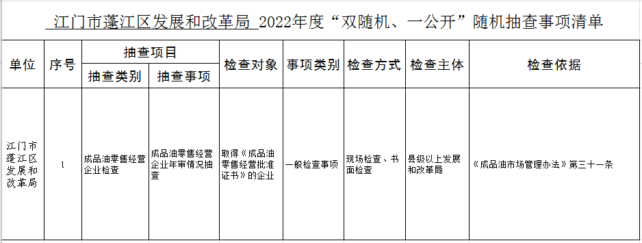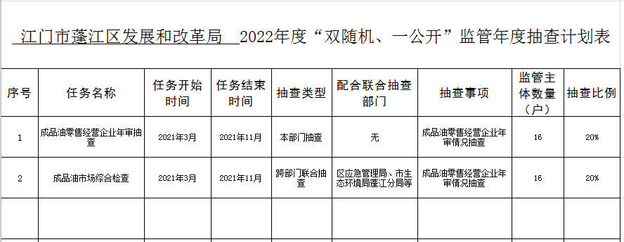 2022年“雙隨機(jī)、一公開”年度抽查計劃表和抽查事項清單