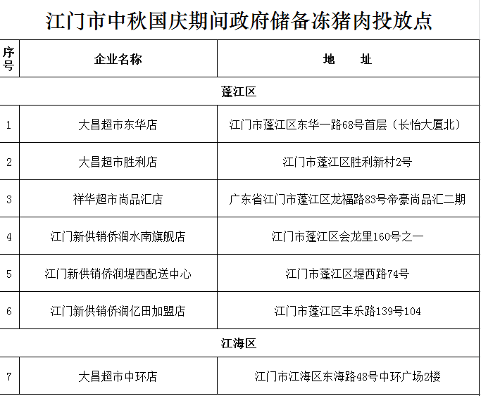 附件:江門市中秋國慶期間凍豬肉投放點(diǎn)