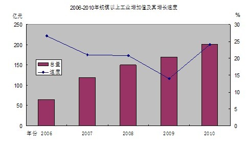 分行業(yè)看,食品制造業(yè)增長28.98%,紡織業(yè)增長19.22%,服裝鞋帽制造業(yè)增長41.24%,皮革毛皮羽毛(絨)及其制品業(yè)增長25.05%,家具制造業(yè)增長32.58%,造紙及紙制品業(yè)增長36.21%,印刷業(yè)和記錄媒介的復制增長35.73%,化學原料及化學制品制造業(yè)增長30.89%,塑料制品業(yè)增長41.01%,非金屬礦物制品業(yè)增長16.28%,金屬制品業(yè)增長41.68%,通用設備制造業(yè)增長27.43%,交通運輸設備制造業(yè)增長6.2%,電器機械及器材制造業(yè)增長31.1%,通信設備、計算機及其他電子設備制造業(yè)增長23.51%,儀器儀表及文化辦公用機械制造業(yè)增長13.28%。