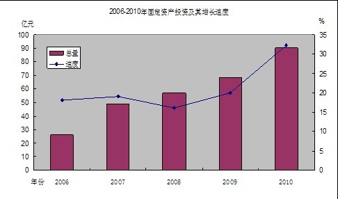 全年全社會固定資產(chǎn)投資90.39億元,增長32.2%。分經(jīng)濟類型看,國有經(jīng)濟投資22.42億元,增長81.53%;民營經(jīng)濟投資45億元,增長6.7%;港澳臺投資16.09億元,增長39.57%;外商投資6.88億元,增長196.52%。分產(chǎn)業(yè)看,第二產(chǎn)業(yè)投資25.8億元,增長78.82%;第三產(chǎn)業(yè)投資64.59億元,增長19.81%。