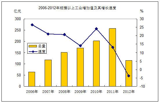 全年規(guī)模以上工業(yè)企業(yè)實現(xiàn)增加值 116.26億元,比上年下降3.9%,其中,輕工業(yè)增加值 56.98億元,下降8.27%;重工業(yè)增加值56.74億元,下降5.96%。分經(jīng)濟類型看,國有及國有控股企業(yè)增長14.81%,股份合作企業(yè)下降28.84%,股份制企業(yè)下降28.44%,外商及港澳臺投資企業(yè)下降1.21%,民營企業(yè)下降32.54%。