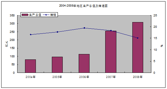 初步核算,2008年全區(qū)生產(chǎn)總值307.78億元,比上年增長15.1%。其中,第一產(chǎn)業(yè)增加值6.27億元;第二產(chǎn)業(yè)增加值166.4億元,增長19.63%;第三產(chǎn)業(yè)增加值135.11億元,增長11.59%。在第三產(chǎn)業(yè)中,交通運(yùn)輸、倉儲和郵政業(yè)增長5.4%,批發(fā)和零售業(yè)增長8.4%,住宿和餐飲業(yè)增長21.7%,金融保險業(yè)增長7.3%,房地產(chǎn)業(yè)下降2.1%,其他服務(wù)業(yè)增長12.7%。人均地區(qū)生產(chǎn)總值達(dá)52851元,同比增長14.25%。