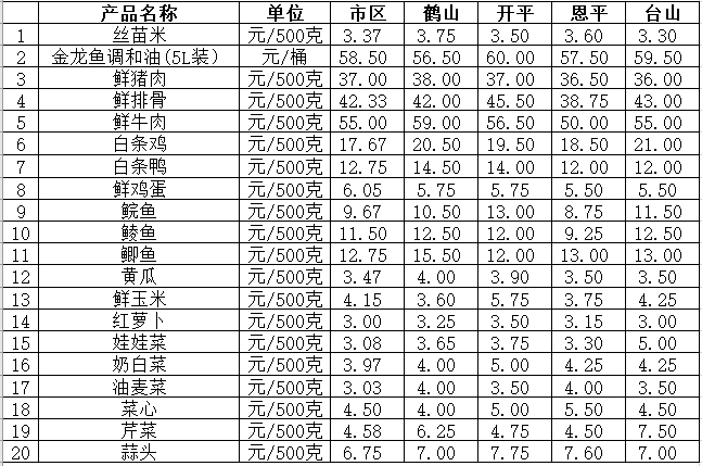 江門市菜籃子報(bào)價(jià)(8月10日)