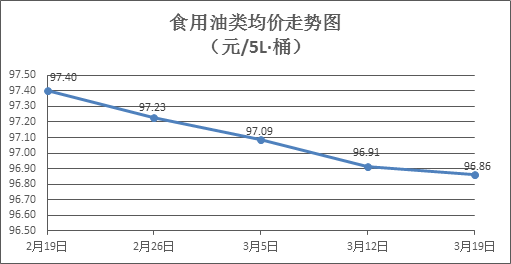 食用油類商品價(jià)格穩(wěn)中微降。本周所監(jiān)測(cè)的9種食用油(5L裝)商品價(jià)格波動(dòng)情況為6跌3平,綜合零售均價(jià)為96.86元/桶,環(huán)比下降0.05%。其中:魯花花生油、金龍魚調(diào)和油零售均價(jià)分別為每桶157.48元、71.46元,環(huán)比分別下降0.02%、持平。