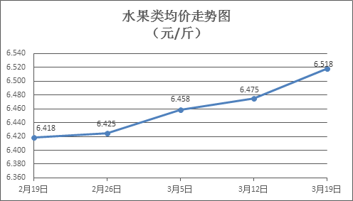 水果類商品價(jià)格有所上漲。本周所監(jiān)測(cè)的6種水果商品價(jià)格均上漲,綜合零售均價(jià)為6.518元/斤,環(huán)比上漲0.67%。其中蘋果、香蕉、梨零售均價(jià)分別為每斤7.15元、3.14元、6.04元,環(huán)比分別上漲0.28%、上漲0.64%、上漲0.50%。