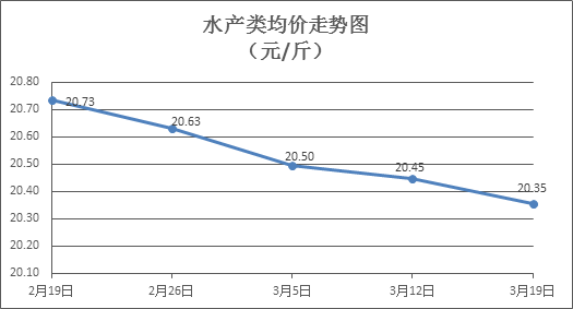 水產(chǎn)類商品價(jià)格主降。本周所監(jiān)測(cè)的10種水產(chǎn)商品價(jià)格波動(dòng)情況為4漲5跌1平,綜合均價(jià)為20.35元/斤,環(huán)比下降0.45%。其中:草魚、鯽魚、羅非魚、基圍蝦零售均價(jià)分別為每斤10.85元、13.95元、8.47元、38.27元,環(huán)比分別下降1.18%、上漲0.14%、下降1.40%、下降0.75%。