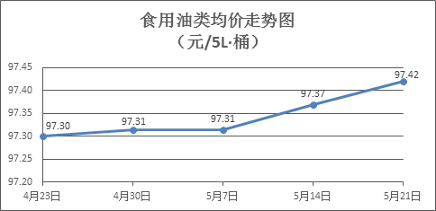 食用油類商品價(jià)格微幅盤(pán)升。上周所監(jiān)測(cè)的9種食用油(5L裝)商品價(jià)格波動(dòng)情況為4漲3跌2平,綜合零售均價(jià)為97.42元/桶,環(huán)比上漲0.05%。其中:魯花花生油、金龍魚(yú)調(diào)和油零售均價(jià)分別為每桶157.44元、71.54元,環(huán)比分別上漲0.02%、下降0.03%。