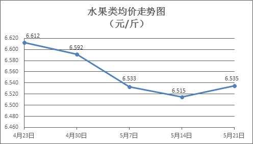水果類商品價(jià)格略有回升。上周所監(jiān)測(cè)的6種水果商品價(jià)格波動(dòng)情況為4漲2跌,綜合零售均價(jià)為6.535元/斤,環(huán)比上漲0.31%。其中蘋(píng)果、香蕉、葡萄零售均價(jià)分別為每斤7.28元、3.23元、13.28元,環(huán)比分別下降0.14%、上漲0.62%、上漲0.91%。