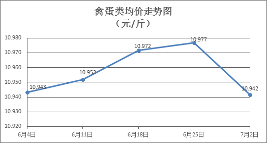 禽蛋類商品價格有所回落。上周所監(jiān)測的6種禽蛋類商品價格波動情況為5跌1平,綜合零售均價為10.942元/斤,環(huán)比下降0.32%。其中:白條雞、白條鴨零售均價分別為每斤19.83元、15.56元,環(huán)比分別下降0.05%、下降0.83%;白殼雞蛋、鴨蛋零售均價分別為每斤6.70元、7.90元,環(huán)比分別下降0.30%、持平。