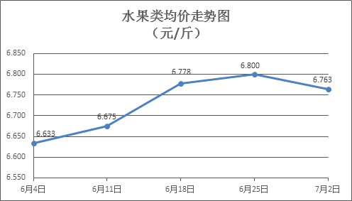 水果類商品價格小幅波動。上周所監(jiān)測的6種水果商品價格波動情況為2漲3跌1平,綜合零售均價為6.763元/斤,環(huán)比下降0.54%。其中蘋果、香蕉、梨零售均價分別為每斤7.44元、3.21元、6.43元,環(huán)比分別持平、下降0.62%、上漲1.42%。