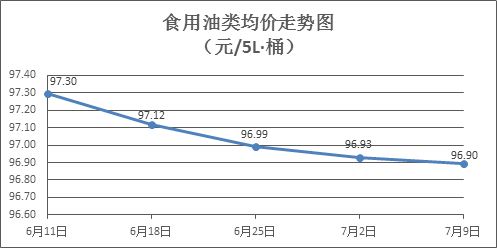食用油類商品價(jià)格微幅下降。上周所監(jiān)測的9種食用油(5L裝)商品價(jià)格波動情況為1漲5跌3平,綜合零售均價(jià)為96.90元/桶,環(huán)比下降0.04%。其中:魯花花生油、金龍魚調(diào)和油零售均價(jià)分別為每桶157.05元、71.39元,環(huán)比分別下降0.10%、下降0.06%。