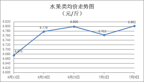 水果類商品價(jià)格有所回升。上周所監(jiān)測的6種水果商品價(jià)格波動情況為3漲3跌,綜合零售均價(jià)為6.802元/斤,環(huán)比上漲0.57%。其中蘋果、葡萄、梨零售均價(jià)分別為每斤7.41元、14.43元、6.54元,環(huán)比分別下降0.40%、上漲1.76%、上漲1.71%。