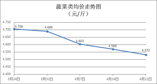 據(jù)本市21家農(nóng)貿(mào)市場監(jiān)測數(shù)據(jù)顯示,上周(4月15日至4月21日,下同)市場上各類“菜籃子”商品供應充足,所監(jiān)測的7大類“菜籃子”商品價格3漲4跌。其中:糧油類商品價格穩(wěn)中微漲,肉禽蛋類、蔬菜類、水產(chǎn)類商品價格總體略降,水果類商品價格升降互現(xiàn)。受高溫天氣影響,肉菜價格略有下降,近期強降雨頻發(fā),預計部分蔬果價格或將有所上漲。