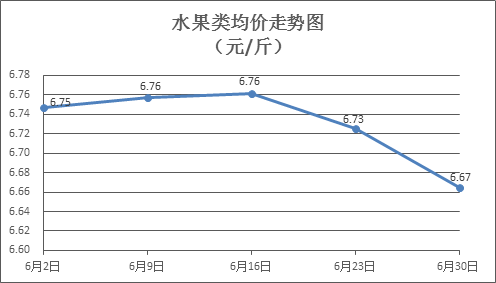 水果類商品價格略有下降。所監(jiān)測的6種水果商品價格波動情況為2漲4跌,綜合零售均價為每斤6.67元,環(huán)比下降0.89%。其中橙子、蘋果、香蕉零售均價分別為每斤5.62元、7.48元、2.97元,環(huán)比分別下降0.71%、上漲0.13%、下降1.33%。