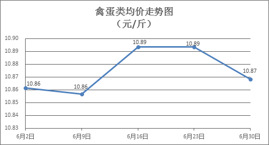 禽蛋類商品價格總體略降。所監(jiān)測的6種禽蛋類商品價格波動情況為3漲3跌,綜合零售均價為每斤10.87元,環(huán)比下降0.23%。其中:白條雞、白條鴨零售均價分別為每斤20.19元、15.04元,環(huán)比分別下降0.15%、上漲0.33%;白殼雞蛋、鴨蛋零售均價分別為每斤6.29元、7.51元,環(huán)比分別下降1.10%、上漲0.13%。