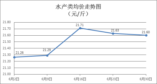 水產(chǎn)類商品價格微幅波動。所監(jiān)測的10種水產(chǎn)商品價格波動情況為4漲5跌1平,綜合均價為每斤21.60元,環(huán)比下降0.13%。其中:草魚、鯽魚、鱸魚、羅非魚、基圍蝦零售均價分別為每斤11.16元、14.32元、21.39元、8.84元、30.39元,環(huán)比分別上漲0.63%、上漲0.07%、上漲1.37%、下降0.11%、下降0.72%。