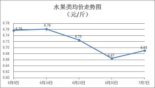 水果類商品價(jià)格有所上漲。所監(jiān)測(cè)的6種水果商品價(jià)格波動(dòng)情況為3漲2跌1平,綜合零售均價(jià)為每斤6.69元,環(huán)比上漲0.43%。其中橙子、蘋果、香蕉零售均價(jià)分別為每斤5.64元、7.49元、2.94元,環(huán)比分別上漲0.36%、上漲0.13%、下降1.01%。