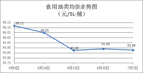 食用油類商品價(jià)格穩(wěn)中微調(diào)。所監(jiān)測(cè)的9種食用油(5L裝)商品價(jià)格波動(dòng)情況為3漲1跌5平,綜合零售均價(jià)為每桶95.88元,環(huán)比下降0.01%。其中:魯花花生油、菜籽油零售均價(jià)分別為每桶154.50元、73.55元,環(huán)比分別上漲0.03%、下降0.16%。