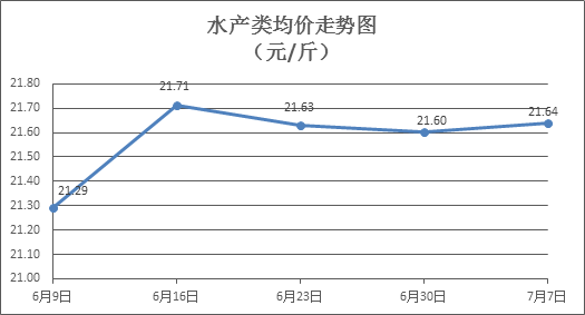 水產(chǎn)類商品價(jià)格有所微漲。所監(jiān)測(cè)的10種水產(chǎn)商品價(jià)格波動(dòng)情況為4漲3跌3平,綜合均價(jià)為每斤21.64元,環(huán)比上漲0.16%。其中:草魚、鯽魚、鱸魚、羅非魚、基圍蝦零售均價(jià)分別為每斤11.17元、14.30元、21.60元、8.85元、30.29元,環(huán)比分別上漲0.09%、下降0.14%、上漲0.98%、上漲0.11%、下降0.33%。