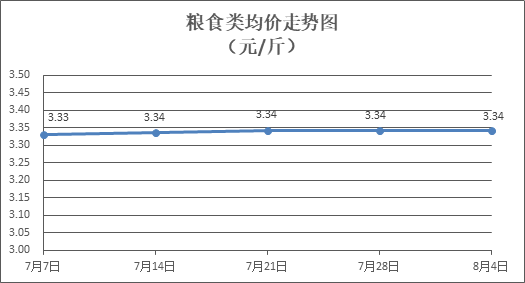 糧食類商品價格保持穩(wěn)定。所監(jiān)測的6種糧食類商品價格均持平,零售均價為每斤3.34元。其中:晚秈米、珍珠米、標準粉零售均價分別為每斤3.30元、3.11元、3.17元,環(huán)比均持平。