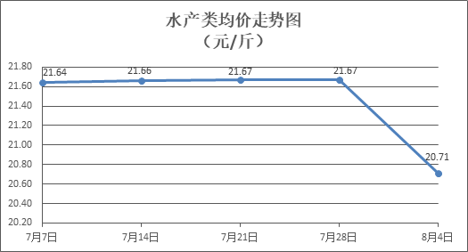 水產(chǎn)類商品價格小幅下降。所監(jiān)測的10種水產(chǎn)商品價格波動情況為1漲8跌1平,綜合均價為每斤20.71元,環(huán)比下降4.46%。其中:草魚、鰱魚、鱸魚、羅非魚、海蝦零售均價分別為每斤11.24元、9.25元、21.64元、8.93元、57.75元,環(huán)比分別下降0.44%、持平、下降1.50%、上漲0.34%、下降12.50%。
