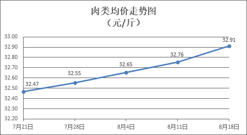 豬肉商品價(jià)格繼續(xù)走強(qiáng)。所監(jiān)測(cè)的8種肉類商品價(jià)格波動(dòng)情況為5漲2跌1平,綜合零售均價(jià)為每斤32.91元,環(huán)比上漲0.48%。其中:排骨、精瘦肉、牛肉、帶骨羊肉零售均價(jià)分別為每斤32.60元、20.19元、45.41元、43.43元,環(huán)比分別上漲1.18%、上漲1.92%、下降0.02%、上漲0.18%。