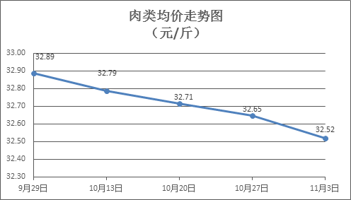 肉類商品價(jià)格持續(xù)回調(diào)。所監(jiān)測(cè)的8種肉類商品價(jià)格波動(dòng)情況為3漲5跌,綜合零售均價(jià)為每斤32.52元,環(huán)比下降0.39%。其中:排骨、精瘦肉、腱子肉、牛腩零售均價(jià)分別為每斤32.29元、20.17元、48.80元、38.81元,環(huán)比分別上漲0.04%、下降0.27%、下降0.80%、下降1.48%。