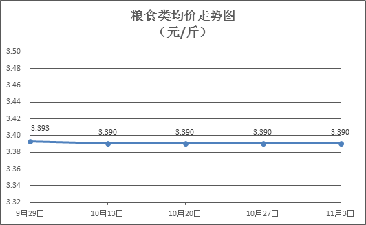 糧食類商品價(jià)格穩(wěn)定。所監(jiān)測(cè)的4種糧食類商品價(jià)格均持平,零售均價(jià)為每斤3.390元。其中:絲苗米、富強(qiáng)粉零售均價(jià)分別為每斤3.57元、3.36元,環(huán)比均持平。