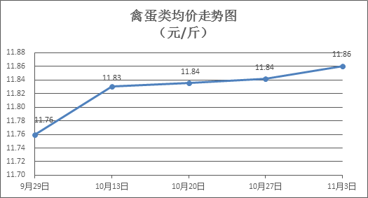 禽蛋類商品價(jià)格微幅盤(pán)整。所監(jiān)測(cè)的5種禽蛋類商品價(jià)格波動(dòng)情況為2漲3跌,綜合零售均價(jià)為每斤11.86元,環(huán)比上漲0.14%。其中:白條雞、白條鴨零售均價(jià)分別為每斤20.44元、15.36元,環(huán)比分別上漲0.41%、下降0.02%;雞蛋、鴨蛋零售均價(jià)分別為每斤6.55元、7.76元,環(huán)比分別上漲0.46%、下降0.37%。