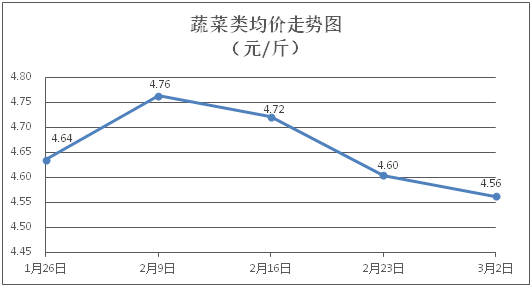 據(jù)本市21家農(nóng)貿(mào)市場(chǎng)監(jiān)測(cè)數(shù)據(jù)顯示,上周(2月24日至3月2日)市場(chǎng)上各類“菜籃子”商品供應(yīng)充足,所監(jiān)測(cè)的7大類“菜籃子”商品價(jià)格環(huán)比總體表現(xiàn)為1漲4跌2平。其中:糧油類商品價(jià)格基本平穩(wěn),肉禽蛋類、蔬菜類商品價(jià)格總體略降,水果類、水產(chǎn)類價(jià)格窄幅盤(pán)整。