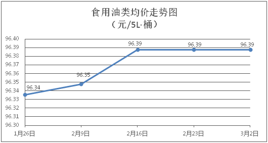 食用油類商品價(jià)格基本平穩(wěn)。所監(jiān)測(cè)的9種食用油(5L裝)商品價(jià)格均持平,綜合零售均價(jià)為每桶96.39元。其中:魯花花生油、金龍魚(yú)調(diào)和油零售均價(jià)為每桶156.04元、72.00元,環(huán)比均持平。