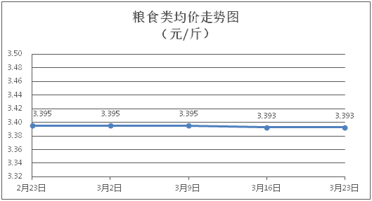 糧食類商品價(jià)格基本平穩(wěn)。所監(jiān)測的4種糧食類商品價(jià)格均持平,綜合零售均價(jià)為每斤3.393元。其中:絲苗米、面粉零售均價(jià)分別為每斤3.53元、3.40元,環(huán)比均持平。