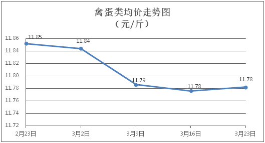 禽蛋類商品價(jià)格微幅波動(dòng)。所監(jiān)測的5種禽蛋類商品價(jià)格波動(dòng)情況為2漲2跌1平,綜合零售均價(jià)為每斤11.78元,環(huán)比上漲0.05%。其中:白條雞、白條鴨零售均價(jià)分別為每斤20.58元、15.24元,環(huán)比分別持平、上漲0.33%;雞蛋、鴨蛋零售均價(jià)分別為每斤6.36元、7.57元,環(huán)比分別下降0.31%、下降0.26%。