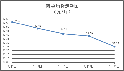 肉類商品價格微幅下降。所監(jiān)測的8種肉類商品價格波動情況為6跌2平,綜合零售均價為每斤32.25元,環(huán)比下降0.41%。其中:排骨、精瘦肉、牛肉、帶骨羊肉零售均價分別為每斤31.18元、19.66元、46.13元、40.80元,環(huán)比分別下降0.42%、下降0.10%、下降0.60%、持平。