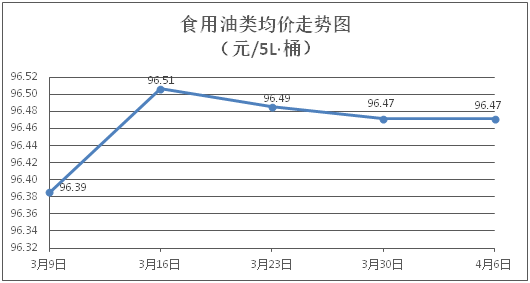 食用油類商品價(jià)格基本平穩(wěn)。所監(jiān)測(cè)的9種食用油(5L裝)商品價(jià)格均持平,綜合零售均價(jià)為每桶96.47元。其中:魯花花生油、金龍魚(yú)調(diào)和油零售均價(jià)為每桶155.83元、72.04元,環(huán)比均持平。