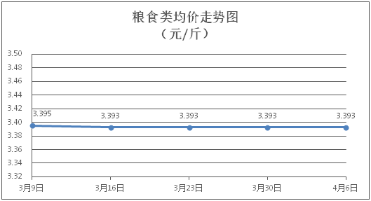 糧食類商品價(jià)格保持穩(wěn)定。所監(jiān)測(cè)的4種糧食類商品價(jià)格均持平,綜合零售均價(jià)為每斤3.393元。其中:絲苗米、面粉零售均價(jià)分別為每斤3.53元、3.40元,環(huán)比均持平。