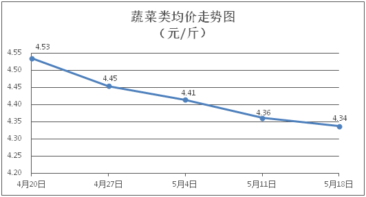 據(jù)本市21家農(nóng)貿(mào)市場監(jiān)測數(shù)據(jù)顯示,上周(5月12日至5月18日)市場上各類“菜籃子”商品供應(yīng)充足,所監(jiān)測的7大類“菜籃子”商品價格環(huán)比總體表現(xiàn)為4漲3跌。其中:糧油類商品價格基本平穩(wěn),肉菜類商品價格總體略降,禽蛋類、水果類、水產(chǎn)類商品價格有所上漲。